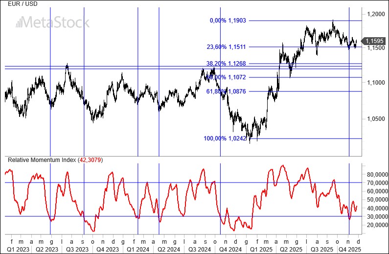 Da quelle parti troviamo il 38,2% di ritracciamento di tutto il bull market dell’euro nel 2025 oltre che i ripetuti massimi dei periodi precedenti.
